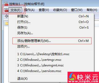 第二:点击文件——添加删除管理单元,下拉选择:证书——添加