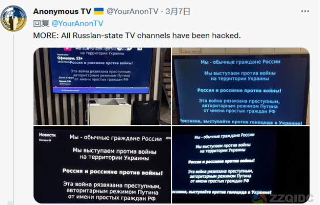“匿名者” 在成功黑进部分俄罗斯媒体后,播放了乌克兰境内的战争录像,其目的是向俄罗斯人民展示军事行动带来的惨烈画面。